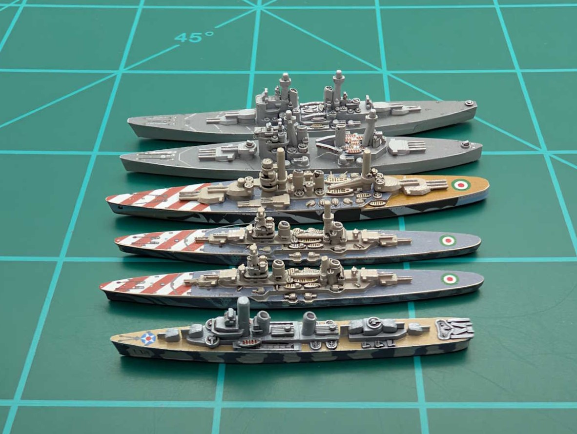 This order is for some Italian capital ships. The two carriers are HBG pieces, the battleships are by EBard Models.