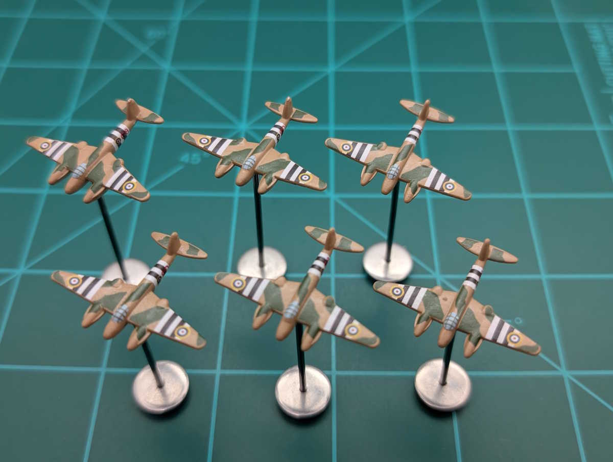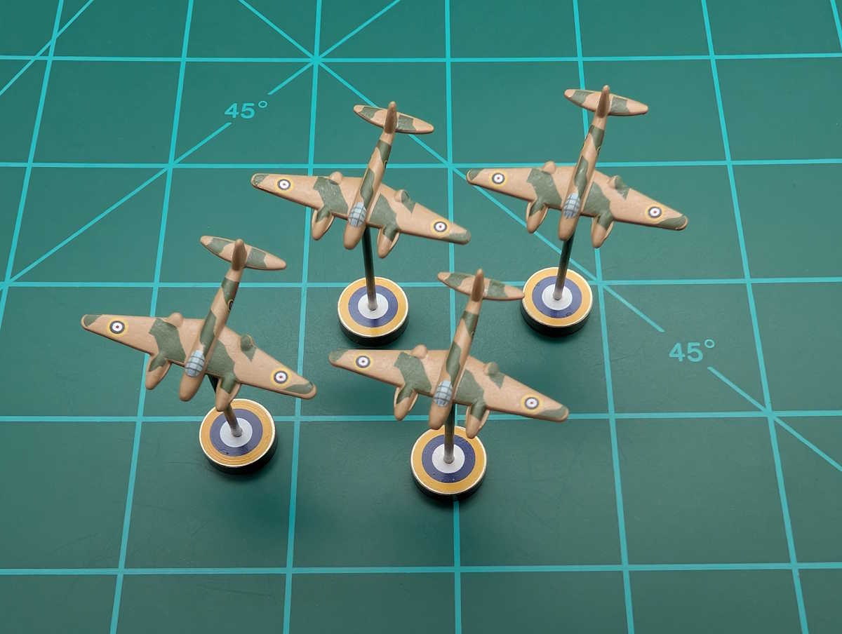 Choose between early war camouflage and insignia (brown base) or late war camouflage (grey base) and insignia. Wing & fuselage invasion stripes are optional.In our games, we differentiate between land-based tactical bombers and naval tactical bombers. Only the naval version can operate on carriers. The naval versions take 1 more turn to produce (to account for specialized training) but otherwise retains all the cost and combat values of the land-based equivalent. We designate the early war (brown) version as land-based tactical bombers and late war (grey) version as naval tactical bombers.